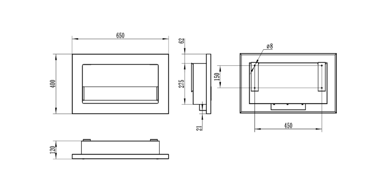 • Biokominek wiszący – Biokominek 650×400 SLIM czarny mat