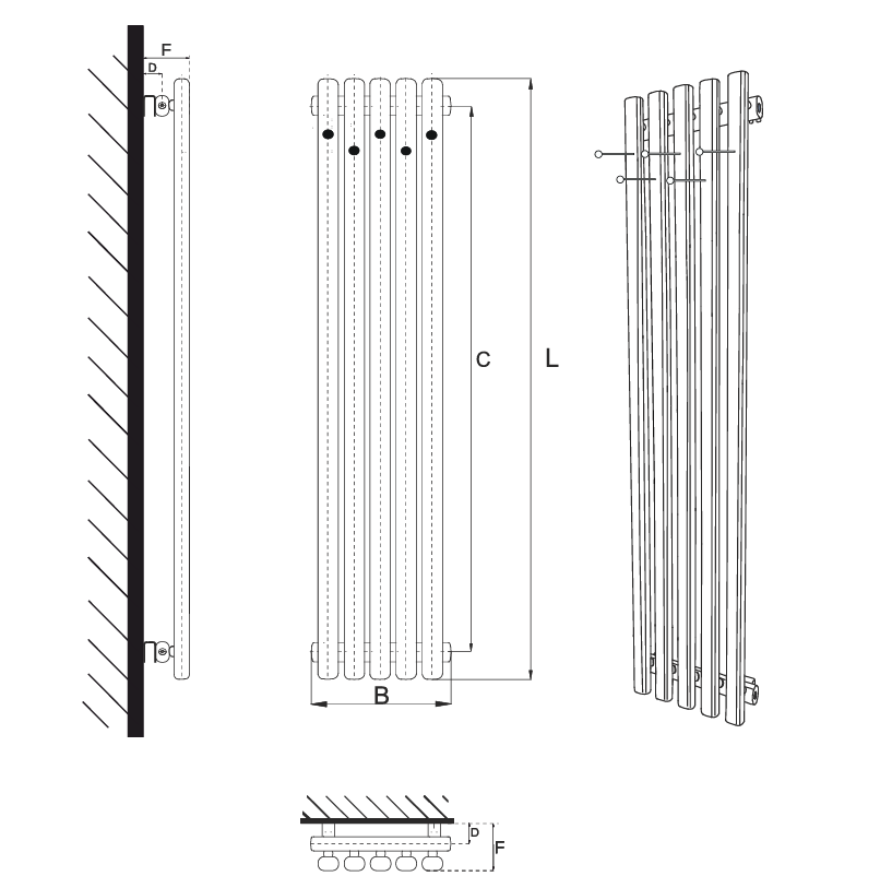 – kolektory poziome okrągłe o przekroju 30×50 mm