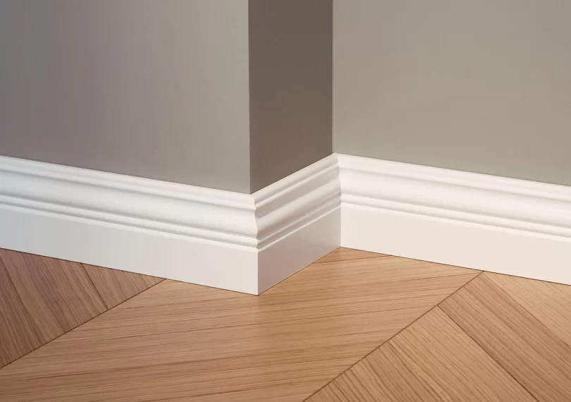 • Estetyczny, uniwersalny design — Wysokie, frezowane, bardzo dekoracyjne i eleganckie listwy przypodłogowe pasują do wnętrz modern classic, glamour, prowansalskich oraz eklektycznych.