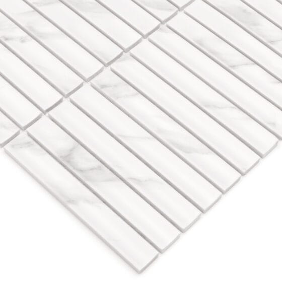 Matowa mozaika typu finger-stick w imitacji marmuru kararyjskiego to elegancka propozycja, która łączy klasyczny urok marmuru z nowoczesną trwałością gresu. Mozaika gresowa Carrara jest idealnym rozwiązaniem dla osób, które cenią ponadczasową estetykę marmuru, ale jednocześnie poszukują materiału o większej odporności i funkcjonalności. Inspirowana słynnym marmurem Carrara, charakteryzuje się białym tłem, na którym delikatnie przebiegają szare żyłki, tworząc subtelny, ale efektowny wzór. Taki design wprowadza do wnętrz luksusowy, elegancki charakter, nadając przestrzeni szyku i wyrafinowania. Mozaika ta doskonale sprawdzi się w przestronnych łazienkach, kuchniach czy eleganckich salonach, które pragną połączyć klasyczny wygląd marmuru z nowoczesnym wykończeniem i funkcjonalnością.