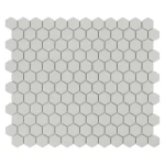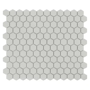 Mini Hexagon Ash matt to szara, heksagonalna mozaika w odcieniu stonowanej szarości z satynowym wykończeniem, zaprojektowana przez House Loves. Nowoczesny, minimalistyczny design inspirowany tradycyjnymi wnętrzami angielskimi. Łatwa w utrzymaniu, odporna na zarysowania, idealna na ściany i podłogi w różnych pomieszczeniach, takich jak salon, wiatrołap czy portal kominkowy.