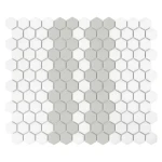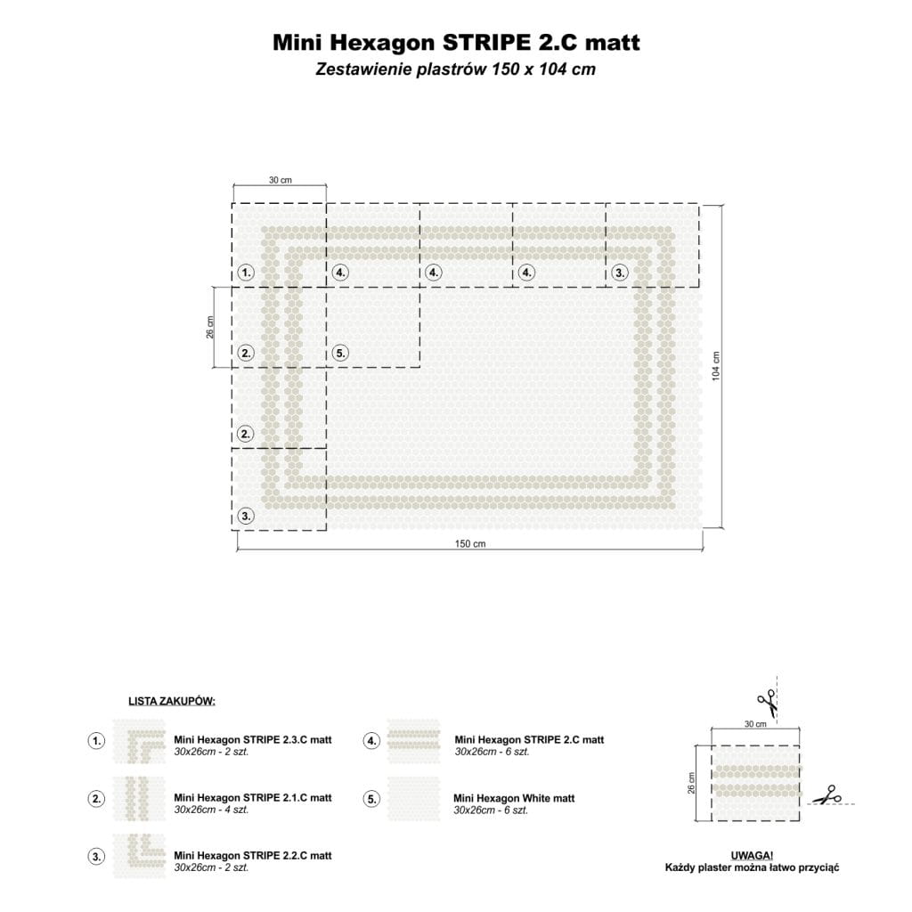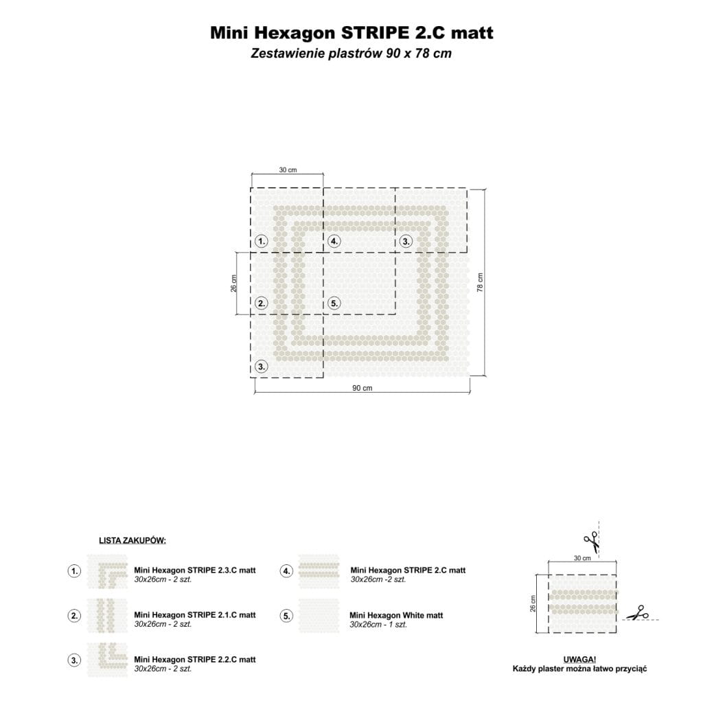 Mini Hexagon Stripe 2.1.A matt to elegancka propozycja, która łączy klasyczny motyw pasów z dodatkowym rozwiązaniem do designu. Jego występowanie jest białą bazą, która znajduje się w szerokim pasie w kolorze szarości, oddzielonym białym akcentem. Do połączenia różnych tekstur i wprowadzenia do wnętrza prostoty i harmonii, jednocześnie obejmującej przestrzeń o wyjątkowym charakterze.