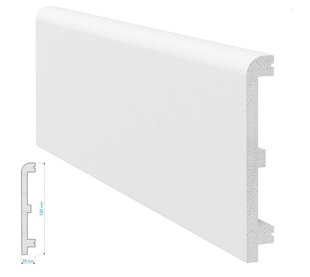 Biała listwa przypodłogowa P12018 do samodzielnego malowania (farbami akrylowymi) jest bardzo długa, bo mierzy aż 240 cm długości, co sprawia, że jest idealna do dużych i długich pomieszczeń. Jej wysokość to aż 18 cm, co dodaje elegancji i wyrazu całemu pomieszczeniu, niezależnie od tego czy to przestrzeń biznesowa czy prywatna. Listwa poza swoim eleganckim wyglądem może mieć także praktyczne zastosowanie przy ukryciu szczelin dylatacyjnych
